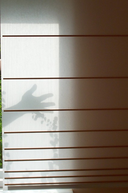 Flächenvorhänge am Fenster, Shoji-Schiebetüren als Durchgang und als Schrankfront, Kiefer